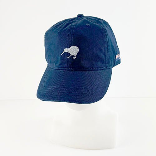 The good quality navy cap has a small embroidered white kiwi bird on the front, and a small embroidered NZ flag on the left side. Nothing too in-your-face, but quietly saying you are a Kiwi or have been to New Zealand.